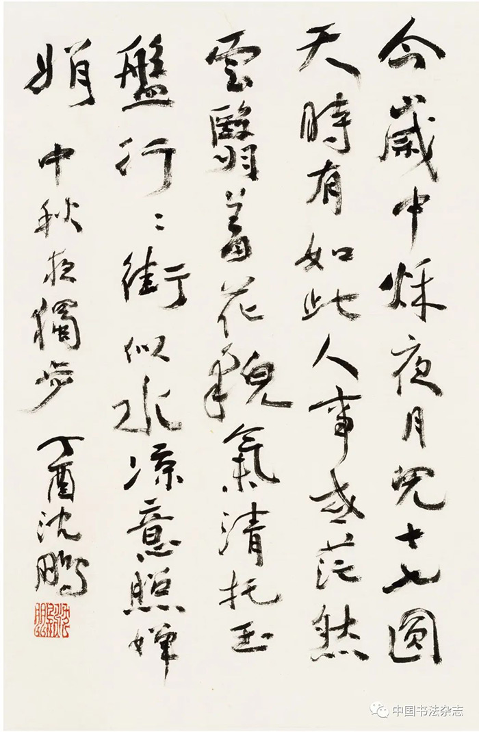 沈鵬 行草書自作詩中秋夜獨步札 縱34cm?橫22cm 2017年