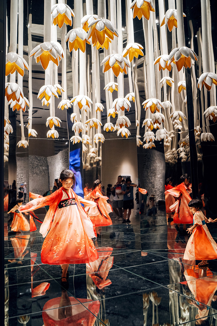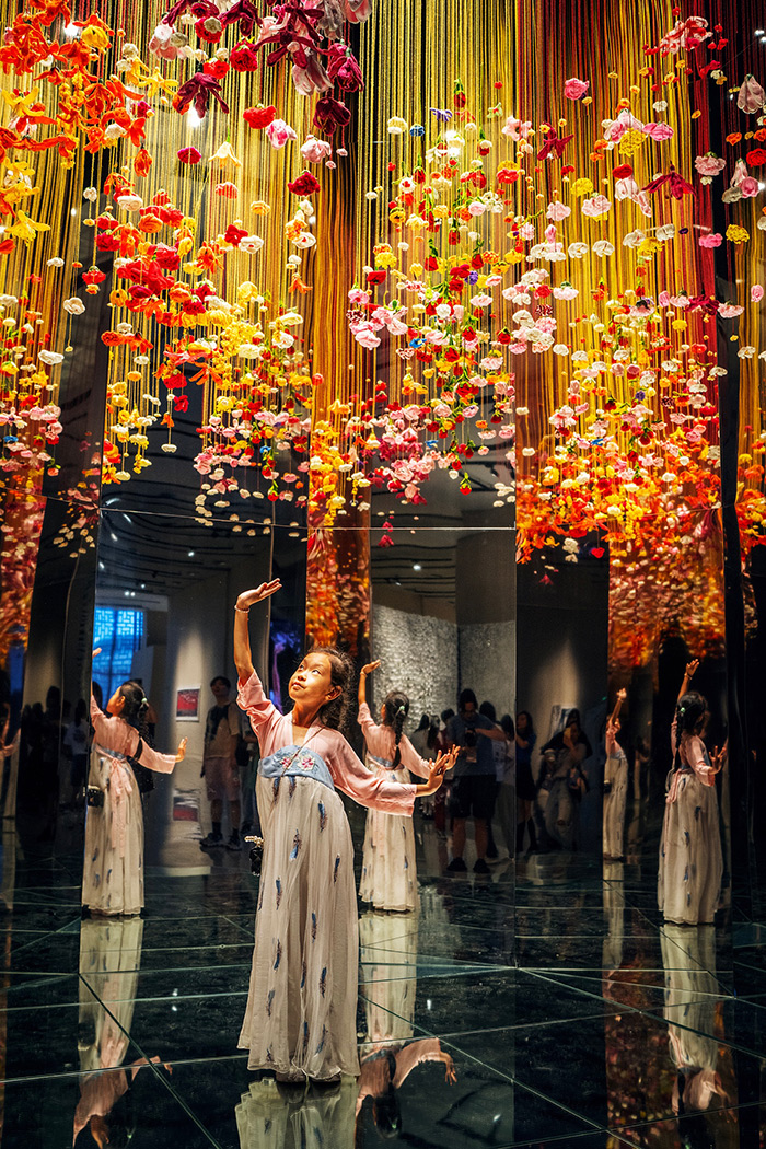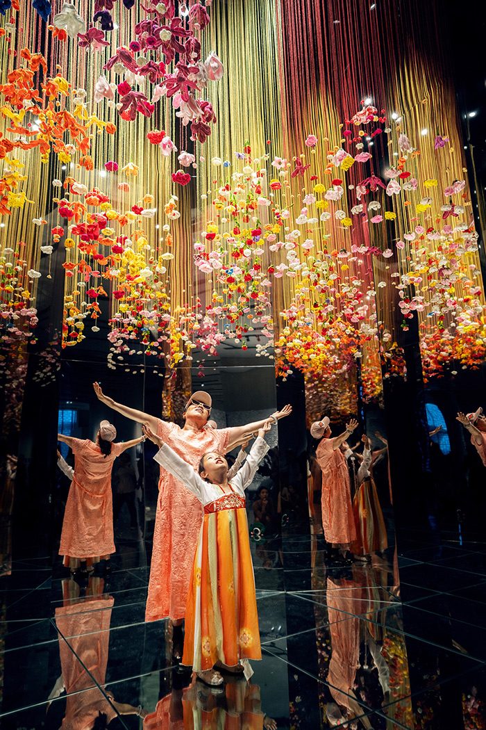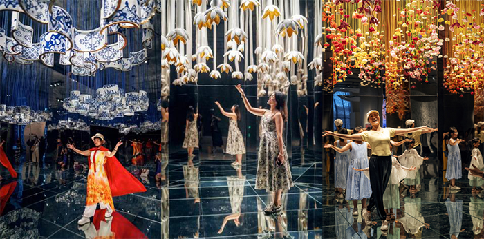 李修建研究員多年來完成了大量西方藝術人類學前沿理論和學科發展的翻譯和討論工作,包括《西方藝術人類學而研究指南》《舞蹈人類學十講》等譯著問世,積累了非常扎實的藝術人類學和藝術美學的理論功底,在此基礎上,李修建研究員融匯各個跨界視角的研討,再次回歸藝術美學的理論維度談到中國式審美等話題。他指出,在大致的區分中,中華美學精神關涉宮廷美學、文人美學、民間美學三個維度,其各自的美感特征和追求不盡相同。在朱樂耕教授不同時期的作品中,我們可以發現,其對三種審美精神都有吸收,并且做到了和諧共融,與當下強調中華優秀傳統文化的雙創問題、中國式現代化、人類命運共同體等概念不謀而合。這一次展覽尤其突出展示了一種中國式審美的表達和當代呈現,結合大量AR、3D打印等技術實踐,真正實現了“在傳承中創造”的展覽主題。深究其在公眾視野中引發的現象級關注的原因,正是在于其將文人美學追求的淡雅簡約和民間美學注重的熱鬧喜慶、百花齊放、萬紫千紅等特點融洽呈現于一個當代藝術空間中,既能喚醒一種集體性的文化記憶和共識,也契合中國人普遍的審美心理和審美情感,產生一種兼具欣喜的親近感。