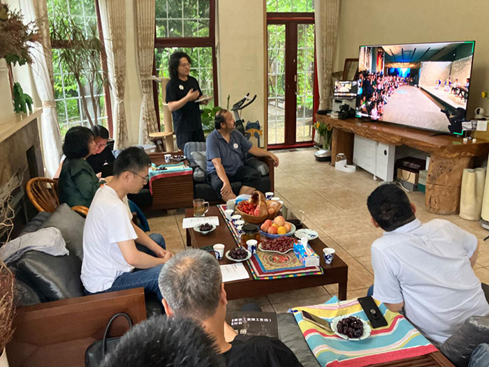 這次研討活動因臺風“杜蘇芮”影響引起的暴雨天氣使得研討會原定舉辦地點中國工藝美術館臨時閉館,活動轉而移到朱樂耕教授與方李莉教授的家中進行,這一變化作為本次活動的一次小插曲,也意外引發了沉浸式討論的效果,伴隨窗外細細簌簌的雨聲,思想反而更為活躍,碰撞出諸多精彩討論,恰如雨中的草木枝葉,顯得更為鮮亮和生機勃勃。在接下來的展期內,另外還有兩場系列學術研討陸續進行,各界專家置身展覽空間中展開研討,充分發揮空間性、互動性和體驗性等特性,對此次展覽中的內涵、價值和衍生話題做出了更加多維視角的創新討論。對此,張士閃教授最后總結到,觀眾在展覽現場表現出的連鎖反應,實質上正是濃縮地呈現出當代中國人的生活狀態、文化心性和傳統綿延。乘此趨勢,期待朱樂耕教授在持續淡泊自然的創作狀態之下,完成更多兼顧傳統和創新精神的作品,朱陽和其他朱樂耕工作室團隊成員在朱樂耕教授的指導下,有更多新地創作和思考出現,畢竟他們是更年輕更有朝氣的一代新人。同時,他也期待方李莉教授圍繞劇場民族志、場景流等概念提出更多深入的探討。