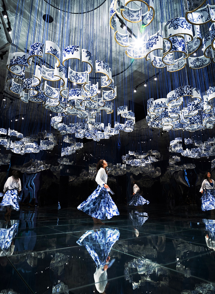 本場研討主要圍繞“表演”這個核心關鍵詞,以“中國式感官語言與空間表達”為主題。由中國藝術研究院藝術學所所長李修建主持。參會專家學者包括:中國藝術研究院藝術學所名譽所長、東南大學藝術社會學與人類學研究所所長、首席教授方李莉,北京舞蹈學院副院長鄧佑玲教授,中央民族大學民族藝術研究院常務副院長王建民教授,山東大學非物質文化遺產研究院院長、《民俗研究》雜志主編張士閃教授,浙江理工大學藝術與設計學院院長、浙江省時尚設計與制造協同創新中心主任朱旭光教授,中國非物質文化遺產研究院學術院長、中國傳統工藝振興計劃協同創新中心主任孫東寧教授,中國藝術人類學學會中國生活樣式設計專業委員會常務副秘書長、浙江理工大學藝術與設計學院兼職教授朱陽。八位專家學者匯聚一堂,嘉賓中既有藝術表演實踐與研究背景的專家,也有人類學研究背景的學者,圍繞展覽中的作品以及現象級的藝術傳播效果,展開了深入的、前沿的、頭腦風暴式的精彩對談,共同探討展覽的內涵和衍生理論,以及如何實現中國式符號的表達并達成國際對話。簡要概括本次活動的特點和突出貢獻,正是在于其搭建了一個開放的平臺,完成了跨界視野、前沿理論、合作機制三個視角上的創新。