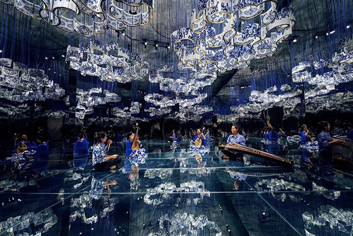 孫東寧教授多年專注于非物質文化遺產保護工作、北京中軸線非遺以及中國傳統工藝振興計劃的協同創新研究等,因此,孫東寧教授轉而從非遺文化研究中見人、見物、見生活的原則談起。首先,此次展覽作為一個當代藝術展,選擇以傳統工藝和展演結合的特定形式,特別符合當下以人民為中心、為人民群眾提供美好文化生活產品的核心理念,“講好中國故事,傳播中國聲音”,正是中華優秀傳統文化創造性轉化和創新性發展的一次深刻實踐。其次,從特定空間與特定內容的組合來說,本次展覽所在地中國工藝美術館、中國非物質文化遺產館正是北京中軸線延長線上的一個特定空間,展示具有中國氣韻美學的藝術作品尤其適合,包括朱陽教授提出的文化皮膚、文化口音等抽象概念,由之產生的行為模式和特定情感等,都以非?;顟B的表達在這個空間中展示出來,讓所有觀展的觀眾得到沉浸式的感受,并且成為展覽中的一部分,達成一次中國傳統工藝的協同創新實踐。并且,琵琶、阮、二胡等民族樂器的表演使得聲音符號也成為場域空間的一部分,充分調動了觀眾的多重感官,靜態展覽、動態展示和活態展演的“三展”結合形式與觀眾形成對話,這正是此次展覽的獨特之處?;诖?,孫東寧教授提出了幾點建議。從空間屬性的角度來說,未來也可考慮將展覽空間拓展到太廟、恭王府、天壇神樂署、景山觀德廳、孔廟國子監等傳統空間中,產生進一步的碰撞和話題延展;從展覽空間的可移動性來說,也建議展覽借助國家藝術基金資助等方式展開全國巡展,在不同地方、區域文化的氛圍中發現更多的理論價值;進一步地,充分發揮展覽空間和時間線上的雙線延展,以及展覽中的中式審美元素,鼓勵展覽團隊將作品帶到其他國家進行展出,激發中外文化的碰撞和交流,為中國當代藝術發現新思路。