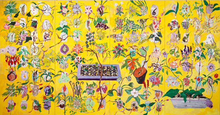 淺野友理子,《Twisting garden》,2021年。油彩、礦物顏料和水彩畫,日本紙,面板,17 x 39厘米。圖片由Michihiro Saga拍攝,由小柳畫廊提供。