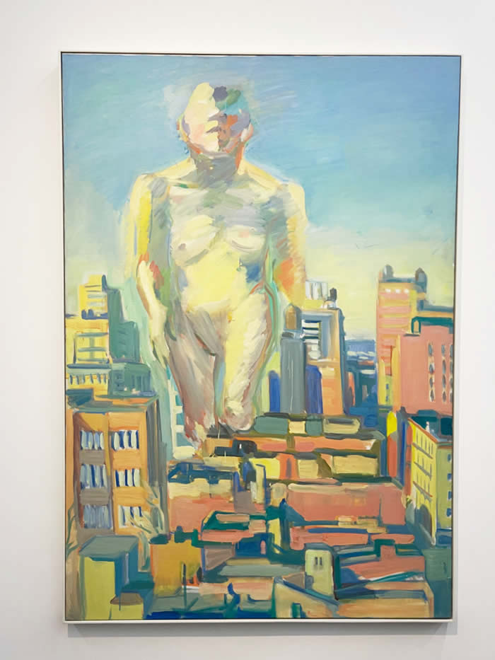 在拉斯尼格最為著名的作品之一《女性力量》(1979)中,再次出現了氣宇軒昂的裸體女人這一主題。在作品中,藝術家像超人一般在曼哈頓的摩天大樓上昂首闊步,這不禁也讓人聯想到1933年的電影《金剛》中巨型“猩猩”在城市中憤怒穿行的畫面。拉斯尼格對這幅作品獲得成功的矛盾態度體現了她與女性意識覺醒的微妙關系——對女性意識的覺醒流露出濃厚的興趣,卻又不希望自己的作品僅被圈定為“女性藝術”。