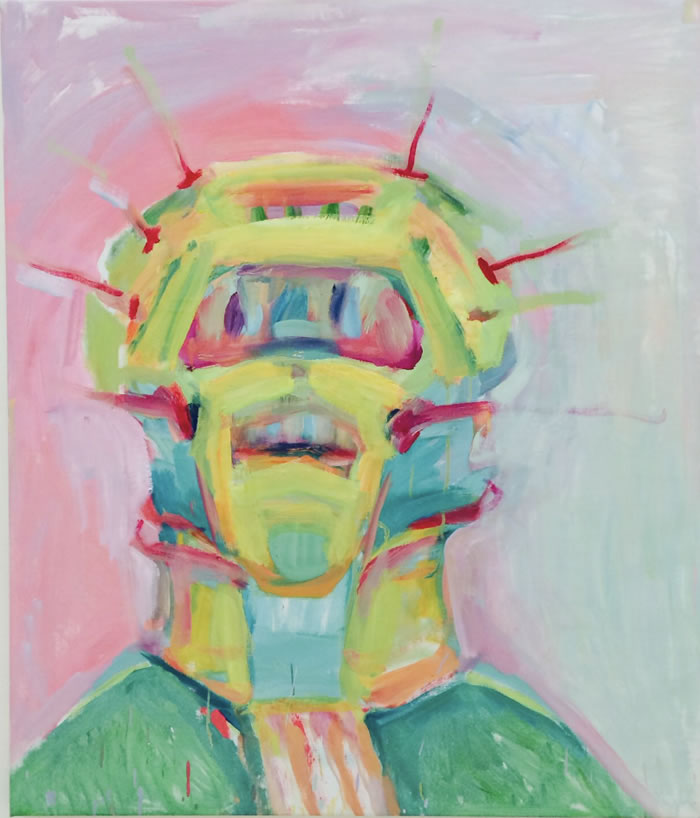在她筆下,“身體意識”的表現形式塑造了其屬于自己的繪畫特色,古人云:“勿以心為形役”——拉斯尼格可以將自己描繪成怪獸、機器或者是外星人,并將自己內心的焦慮、創傷、幻想和欲望注入其中,通過獨特的顏色將抽象的感情具體的可視化呈現在觀眾面前。正如她所言:“唯一真實的是我自己的感覺”,“而感覺就發生在我棲息的身體之中”。
