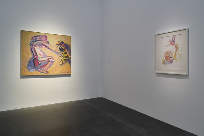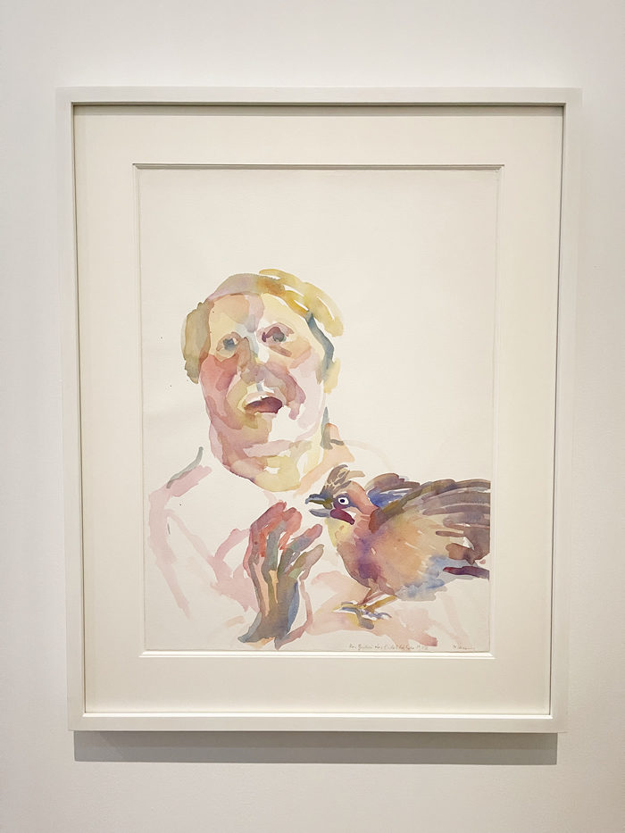 探討人與動物形象的合成,是一個可以上溯至亞里士多德時代的文化傳統與知識議題。在拉斯尼格展覽的“動物”板塊,無論是水彩還是油畫作品,藝術家都將鳥類、奶牛、黃蜂、母雞等動物形象大量并入繪畫之中。受法國哲學家雅克·德里達(Jacques Derrida)質疑人與動物邊界思考的影響,拉斯尼格在借助動物形態表達自我不同方面的同時,也在為受環境惡化威脅的生物發聲。