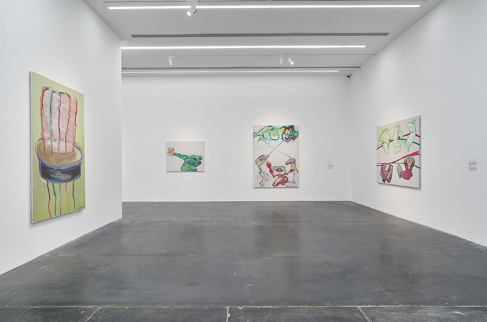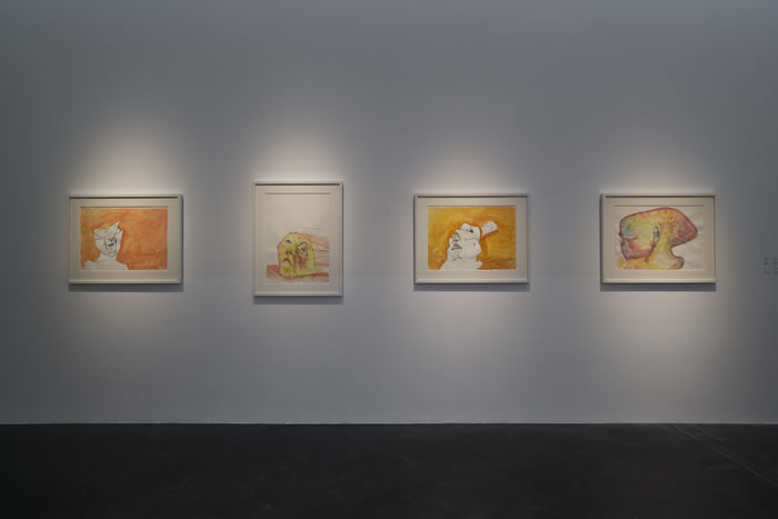 “自愿的對象”板塊其中一個空間匯集了藝術家于20世紀90年代創作的紙上繪畫作品,通過拉斯尼格對聲音、氣味等感官的探索映射,展現了藝術家對于自己頭腦內空間的想象。紙面上揮筆即成的線條與細膩選擇的色彩使她的身體感覺、渴望與幽默愈發清晰可見,也邀請觀者走近她“以自我為中心”的探索體驗之中。正如其所言“素描最接近構思”,這些素描有的為拉斯尼格將自己的思考拓展為大幅繪畫提供了靈感,有些則因其引人入勝的直接性和親切感而獨自成畫。