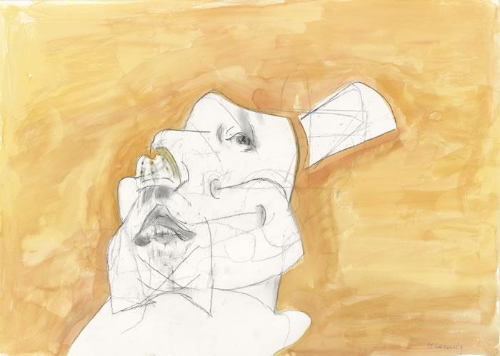 瑪麗亞·拉斯尼格,《鼻部過濾器》,1998,紙上粉筆和水彩,50×70 cm。?瑪麗亞·拉斯尼格基金會。圖片由奧地利國家銀行收藏提供