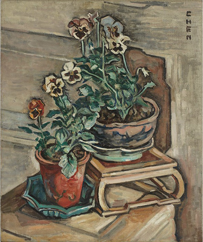 中國留洋先驅張荔英筆下的《三色堇》(1940-47年)則是其人生境況的描摹。創作此畫時,張荔英與丈夫被日軍軟禁于戰火紛飛的上海,這張畫作中寄寓著其對祖國的熱愛和對內心寧靜的找尋。