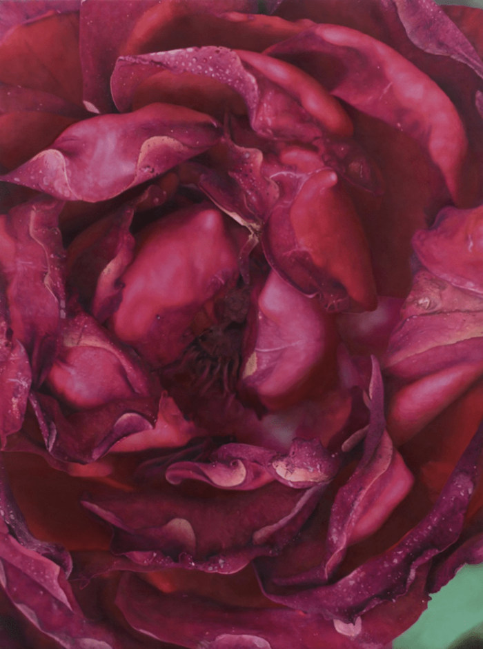 玫瑰(rose)是花卉靜物畫中的重要主題。西方所稱的“rose”實際上包含薔薇、玫瑰和月季三大類,因近代翻譯問題,皆被譯作“玫瑰”。中國早在五千年前已開始栽培“玫瑰”,但中國“玫瑰”直到18世紀才傳入歐洲,與當地的“玫瑰”雜交,最終于1867年培育出了令藝術家醉心不已的四季開花的迷人花種(被稱為“現代月季”),這也是彼時歐中之間國際貿易和交流的標志之一。