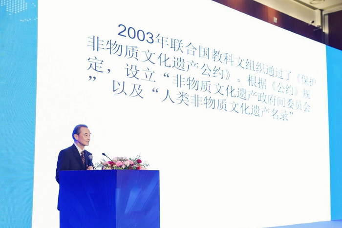 中國的非遺保護工作在世界上占有重要地位,政府高度重視非遺保護工作,民眾積極參與,形成了保護非遺的熱潮和聲勢浩大的系統工程,中國常駐聯合國教科文組織前文化代表、申遺代表、文旅部國際合作與交流局原文化參贊蘇旭結合親身經歷,以《中國是如何獲得“人類非遺名錄”項目數量世界第一的》為主題,在本次大會做主旨演講,特別提到“中國已成為聯合國教科文組織在非遺保護領域重要的倚重力量?!?/p>
