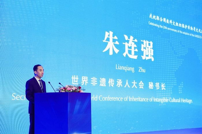 大會秘書長朱連強宣讀聯合國教科文國際民間藝術節組織理事會賀信