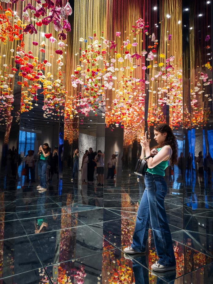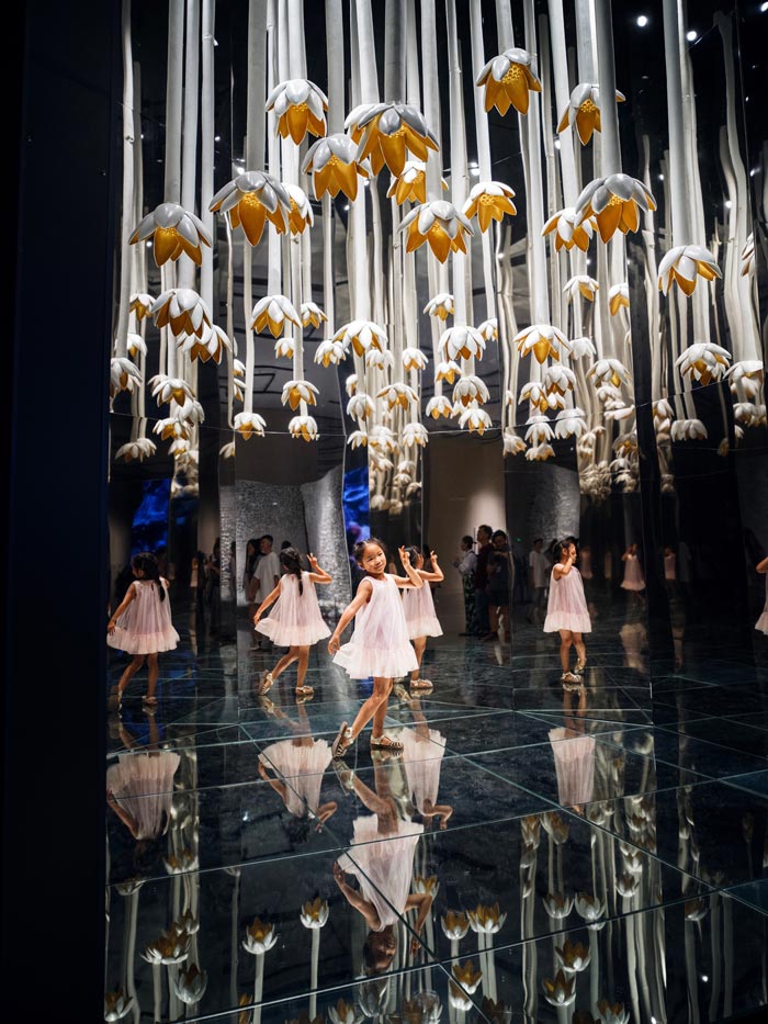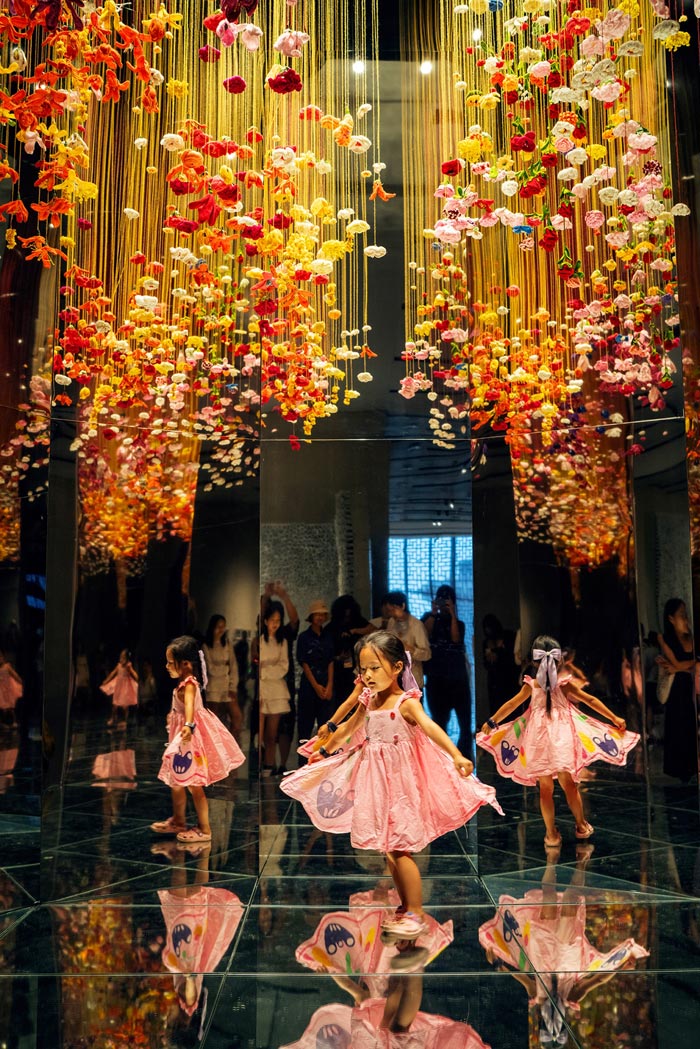 其二,此次展覽打破了藝術與生活的關系,創造新的生活,觀眾在作品中呈現自己,展示自己,不斷地進行著美的再生產再創造。他們會穿著最漂亮的衣服、與這個背景環境最和諧的服裝,在里面表演、舞蹈、拍照。