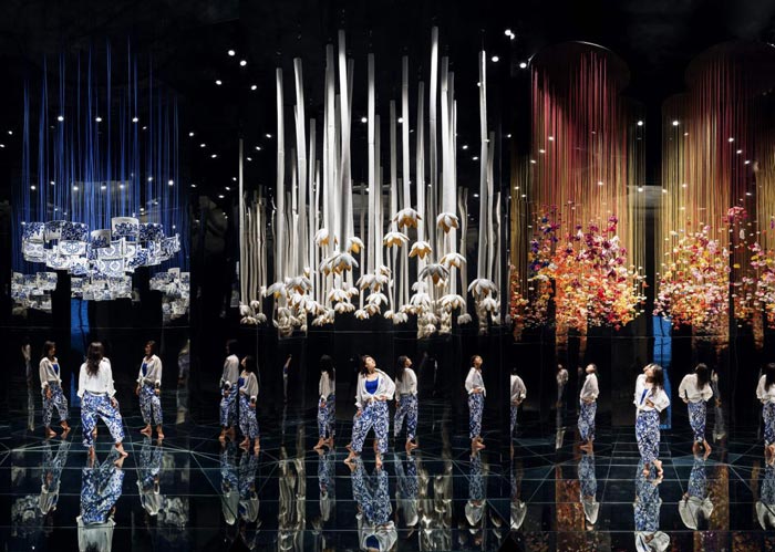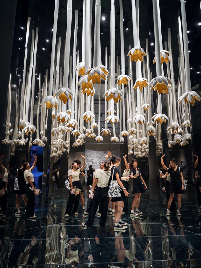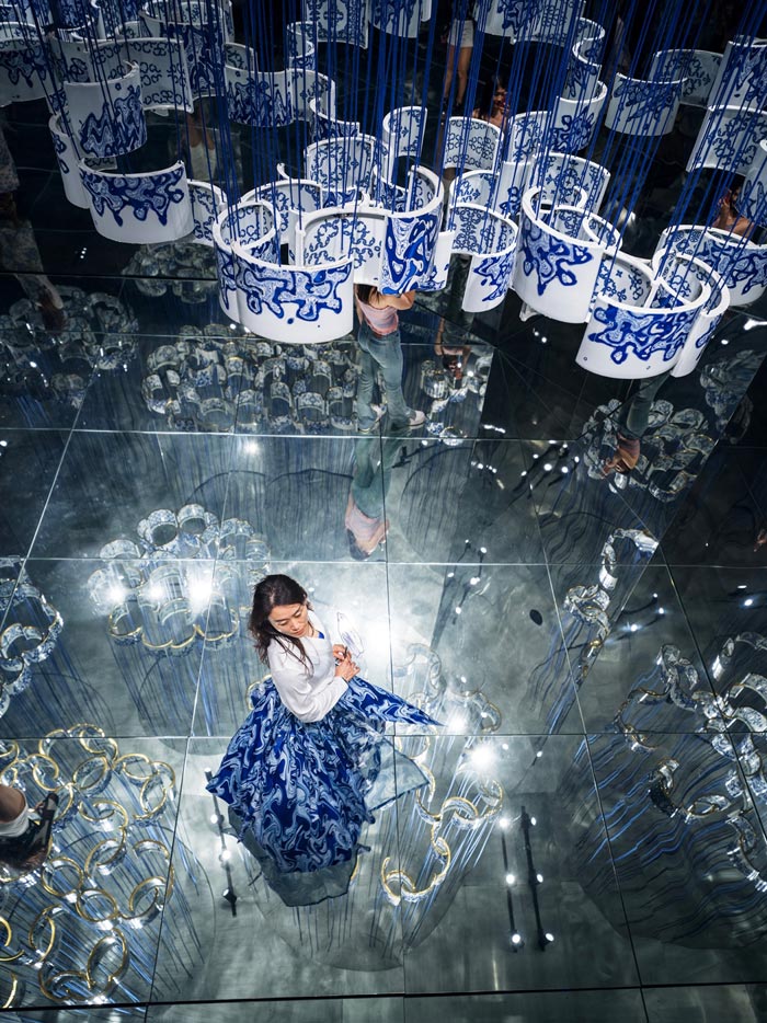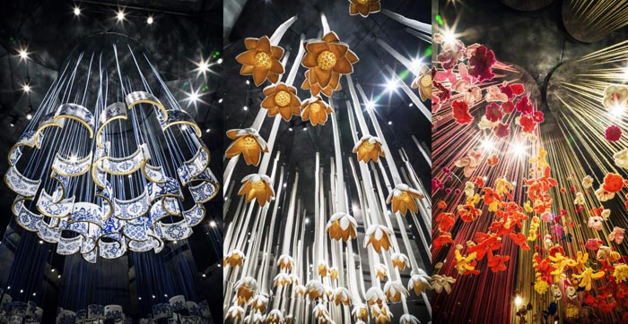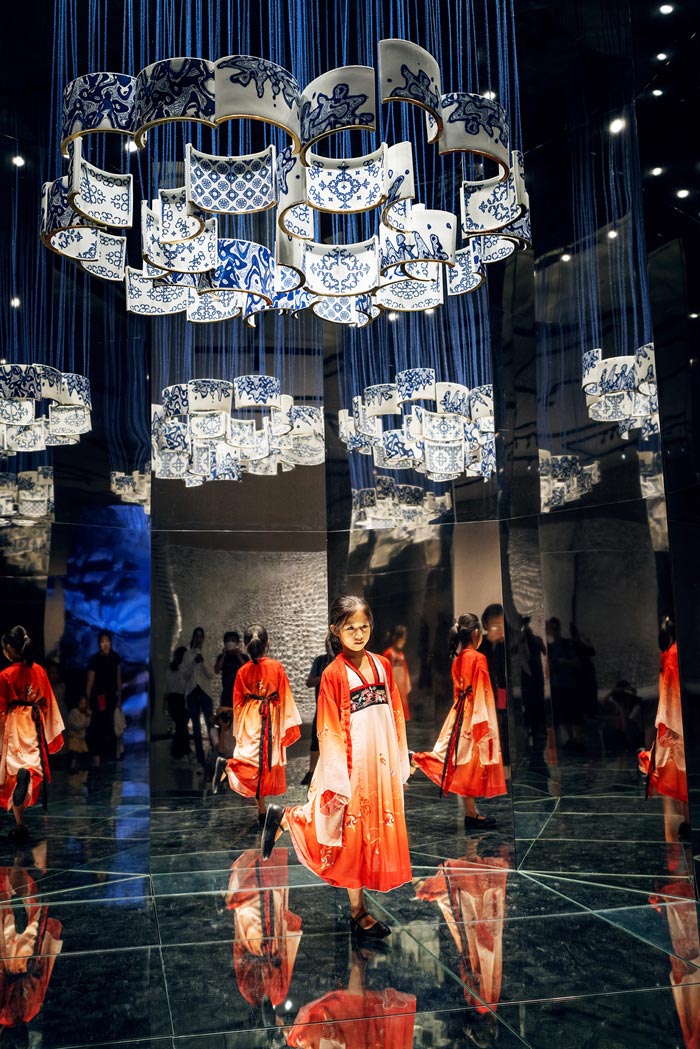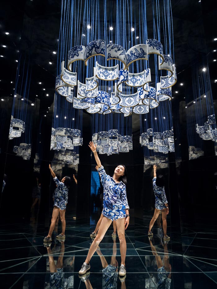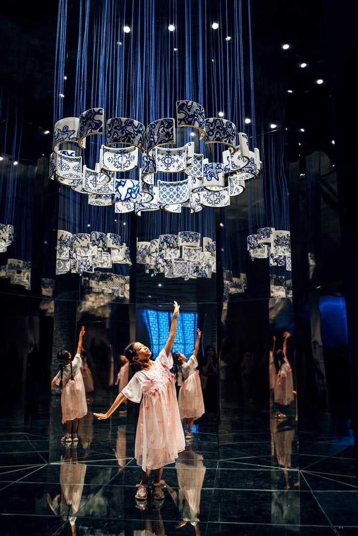 2023年7月16日由中國藝術研究院與中國工藝美術館?中國非物質文化遺產館共同舉辦的《在傳承中創造:造型?表演?藝術場景——朱樂耕藝術展》在北京開幕。這是一場別開生面的當代藝術展。這次展覽的最大創新就是改變了美術館展出的藝術作品與觀眾之間的關系。以往觀眾在美術館看展覽只是被動地欣賞,但在這次展覽中卻可以成為了自我表達的主體,藝術不再是膜拜的對象,而是可以激起對話靈感的對象,美術館也不再僅僅是美術館,還被賦予了劇場的功能。這次的藝術展出的主題是“藝術場景”,也就是將作品幻化為“場景”,這一場景讓時間與空間疊合,并以觀眾自發拍攝的照片和視頻的形式被不斷地上傳到媒體空間,形成動態的“場景流”,這是一場當代藝術的革命。也是展覽中“在傳承中創造”的主題所要表現的核心內容,從展出的元素來看有許多中國的傳統符號:青花瓷、絨線、蓮花等,但其組合的方式卻是以當代裝置藝術形式來表達的,其中的媒材不僅有陶瓷、還有鏡子、鋁合金、鋼材等等。這是中國當代陶藝家朱樂耕帶領他的團隊共同創作的,如果說,朱樂耕的作品以往是以陶瓷材料見長,但這次他讓以朱陽為代表的年輕一輩的藝術家們加入了他的創作,使他的作品開始出現了新的面貌,從當代陶藝走向了當代藝術。