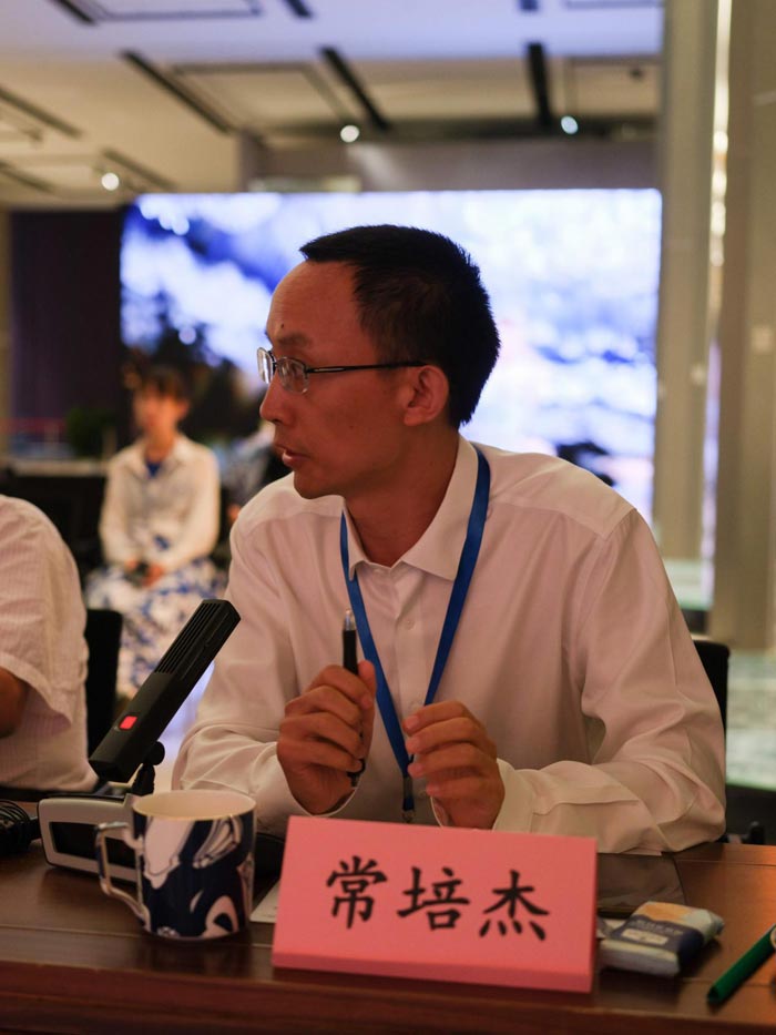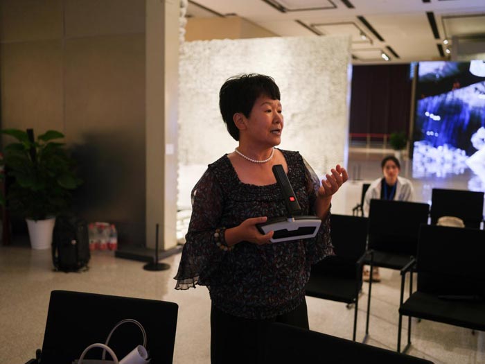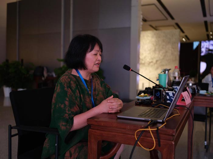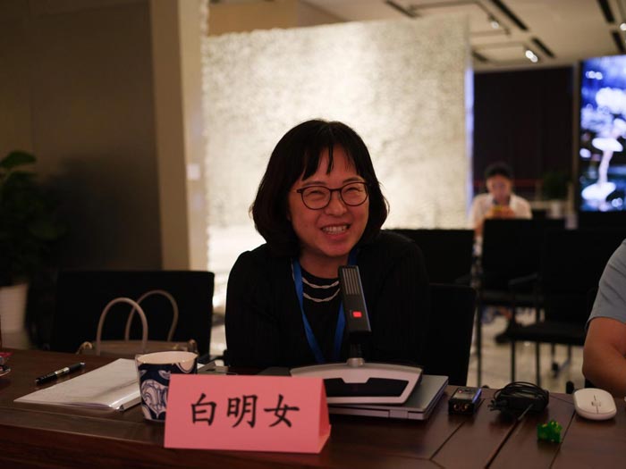 最后一個發言的白明女女士,朱樂耕教授在韓國做的許多作品都是她做的翻譯。她在發言中,講述了1999年與朱老師在中國美術館相遇的時刻以及朱老師在韓國做陶瓷藝術創作的許多歷程,尤其是回顧了在韓國首爾麥粒音樂廳、濟州島肯辛頓酒店做環境陶藝時在一起探索與研究的過程。她說,此次展覽的新作品,尤其是以朱陽代表的朱樂耕團隊創作的新作品“花的三重境”,受到了廣大觀眾的熱捧。主要是因為這些作品具有很強烈的中國元素引起了大家的共鳴。她提出的問題是,展覽后續是否可以到國際上去做巡回展,她也希望有機會能前往韓國展出,看看這樣的展覽能否在異國的后續場景中產生共鳴。