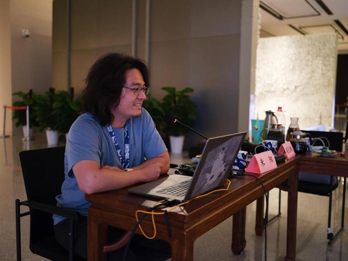 會議首先由本次展覽的藝術家朱樂耕教授致感謝辭,他向各位參會者介紹了展覽的相關情況,包括作品的制作過程、陶藝作品與空間的關系、闡述了自身的陶瓷藝術發展歷程,以及當代陶瓷藝術在今天如何在傳統中轉型,融入當下語境。同時,提出了他多年來,從傳統中國藝術中研究提煉的“線的氣韻構成”這一理念,以及如何將這一理念融入到自己的藝術創作中。