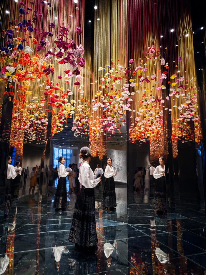 第四點,在傳統中創造是整個展覽的精神?!痘ǖ娜鼐场酚玫氖乔嗷ù?,它將傳統手工藝轉變成當代藝術,是傳統手工藝的再生與新生,也是傳統藝術當代的最新表達,具有一種強烈的中國風格??梢哉f,朱樂耕老師的藝術場景努力營造的是一種中國式的詩意空間。