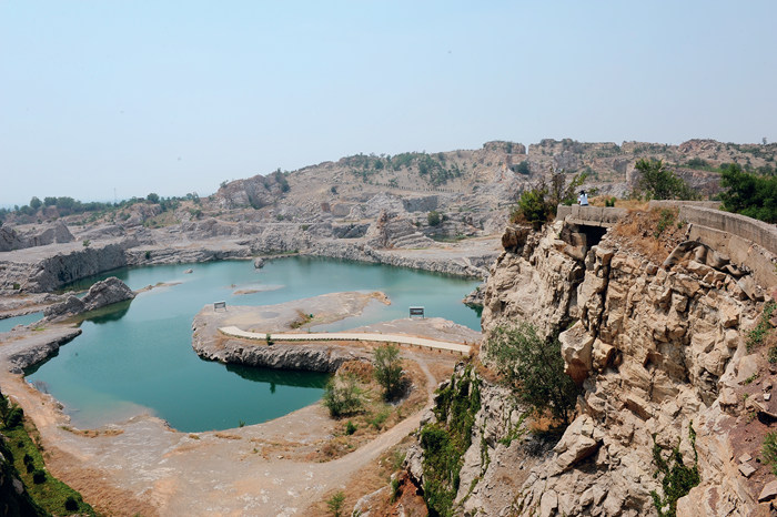 堯山開采后遺留下來的殘跡,許多大坑里集聚了雨水,殘跡上也開始長出了一些綠色植被。這里由于景色“慘烈”,今天居然成為游客們的打卡之地,有人還為它取了名字,叫“魔鬼城” 石軍良拍攝 2022年 圖片來源:《村莊里的藝術》