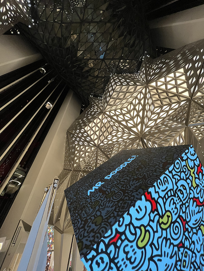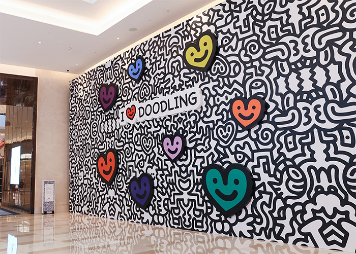 由新濠博亞娛樂及 Artelli聯合主辦、澳門特別行政區政府社會文化司擔任指導單位、澳門特別行政區政府文化局任支持單位,并由藝術門、Artelli以及ARTOX GROUP亞創文化集團策展的“藝文薈澳:澳門國際藝術雙年展2023”特展《Mr Doodle(涂鴉先生)澳門首展》于8月1日至 10月15日在新濠天地舉辦。本次展覽特別呈現4件為新濠打造的全球首發大型藝術裝置及24件原作品。9月12日,Mr Doodle(涂鴉先生)親臨新濠天地與賓客一同探索他幻想世界的涂鴉之旅,通過現場作畫讓賓客感受藝術的魅力。