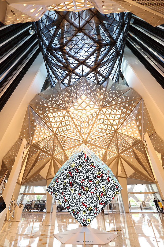 “涂鴉魔方”令酒店建筑的菱形幾何結構、流暢曲線及自由流動的形態變得更為生動