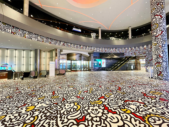 涂鴉殿堂——位于新濠天地主大堂的的沉浸式藝術裝置“涂鴉殿堂”,呈現了無比震撼的視覺效果,為賓客提供獨一無二的藝術體驗。由地板至墻壁和柱石的每個表面都充滿了藝術家獨特的創作風格,巨型LED電視幕墻更展示了Mr Doodle(涂鴉先生)在澳門首展的心血作品及創作歷程,讓觀眾沉浸在他的創意世界。