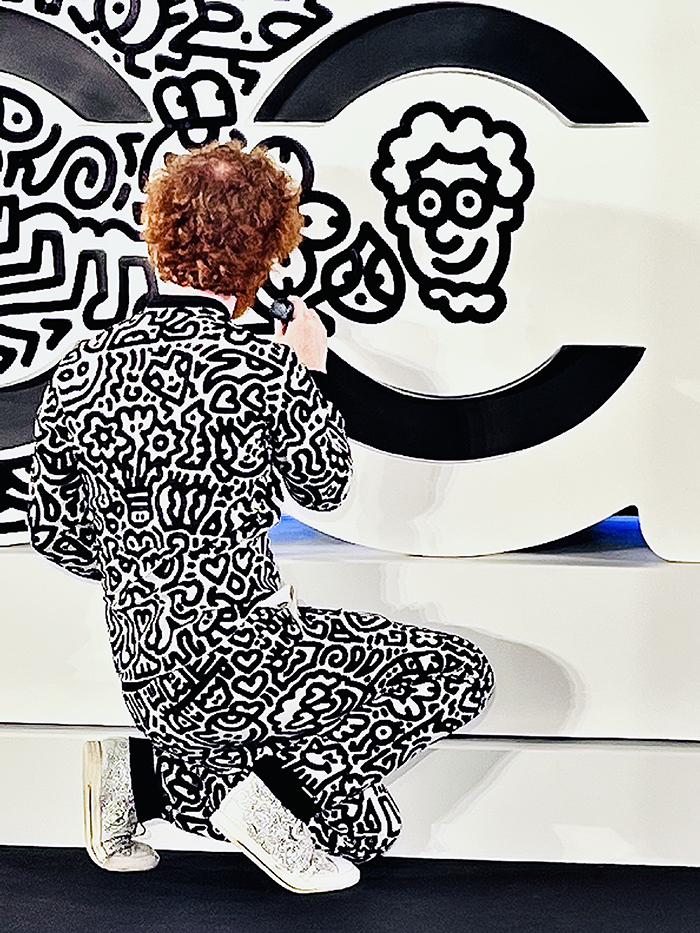 Mr Doodle(涂鴉先生)的現場創作是本次展覽最令人期待的環節。9月12日當天,Mr Doodle(涂鴉先生)在澳門首場現場涂鴉創作表演吸引了全球目光,他以獨有的藝術風格,利用復雜的黑白線條和圖案為特色,在一件約2.5米x1米的大型新濠天地標志雕塑上盡情作畫,為現場嘉賓帶來一場精彩的即興創作表演。賓客親眼見證大師的創作過程,近距離欣賞一條條簡單的線條在他的手中化為一副充滿藝術創意的作品,感受他作為涂鴉藝術家的美學理念與藝術追求。