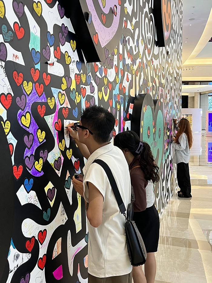 觀眾在愛的涂鴉墻上傾瀉對于愛的訴說