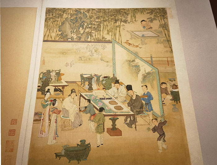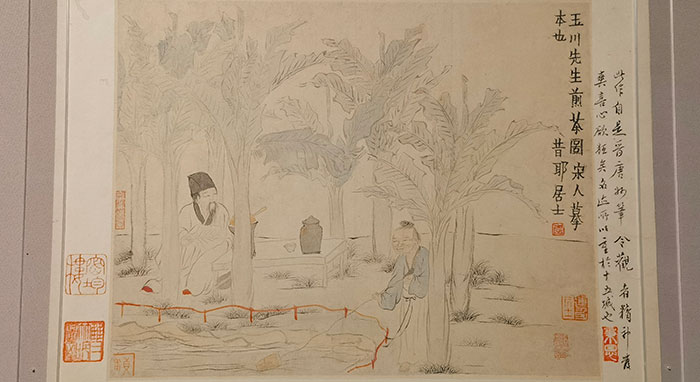一個展覽要通過展品的組織和布局構建其策展理念和敘事?!安璧氖澜纭弊鳛檎褂[的一條重要敘事線索,在器的世界之外還呈現了一個形而上的“道”的體悟。在“茶道尚和”部分,展覽以大面積篇幅展示了歷代文人士大夫階層所著茶論、詩賦、文章。同時,在描繪事茶宴飲場景的繪畫作品中,同樣有文人階層的身影。