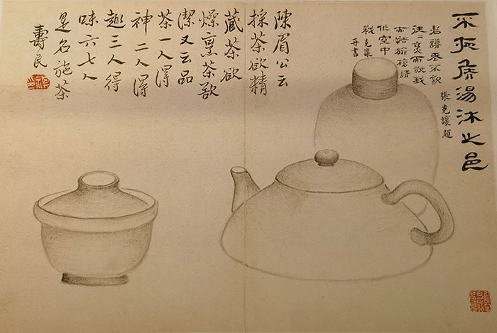 除文人雅士階層,宋徽宗和乾隆皇帝為推動經濟和茶文化普及與構建所寫的文論也是展覽呈現的一個亮點。如《荷露烹茶詩稿》就是乾隆皇帝本人所記錄下來的他在烹茶用水方面的體悟,他認為露水、雪水是烹茶的最佳用水,其中又以承德避暑山莊的荷露為上佳之選。乾隆不僅作詩,還規制茶器、審評用水、營建茶舍、組織茶會等一連串的茶事活動,引領著清代茶文化的潮流和風尚。