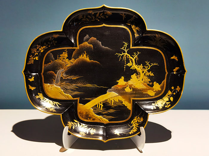 黑漆描金山水圖海棠式盤,日本1603-1868年,故宮博物院藏