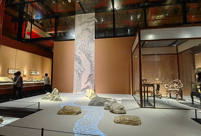 作為茶事由繁至簡的轉折時期,明中期出現的“泡茶法”將備茶從繁瑣的步驟和器具中解放出來,成為我們今天當代人茶會、茶事和日常品飲的主要形式。展覽展出的部分茶器同樣展示了這一變化的邏輯,紫砂壺、瓷壺、蓋碗、壺承、壓手杯等取代了圓鏟、執壺、托盞、渣斗、搗臼、碾子、棕刷等在茶事中的位置,器具形制向適應沖泡的方式過渡。在這個過程中,在茶器和茶事之外,明代人還發現了一個新的發展茶文化的維度——茶境,追求由茶器、茶事、茶空間、茶藝帶來的綜合審美和精神體驗。