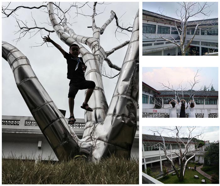 就地施工、依形而制的《記憶樹》在金屬的包裹之下“鳳凰涅槃”,2017年完成后得到美術館和觀眾的認可,一時成為參觀者和游客的打卡之地。