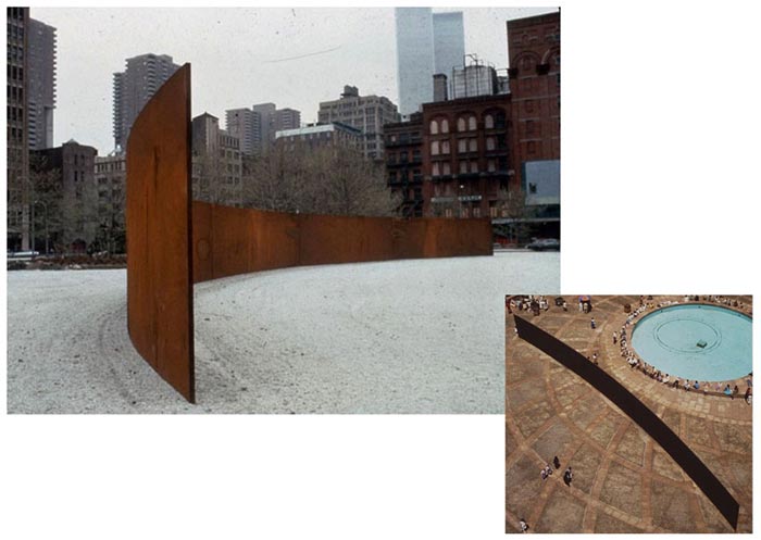 美國藝術家理查德·塞拉(Richard Serra)的《傾斜的弧》(Tilted Arc,1981),1989年被拆除。