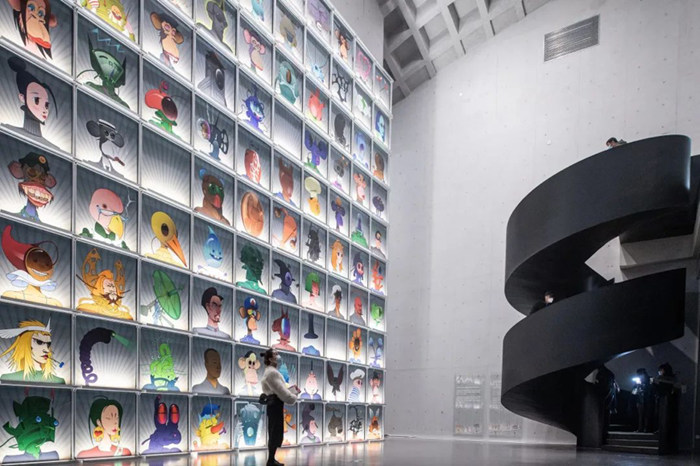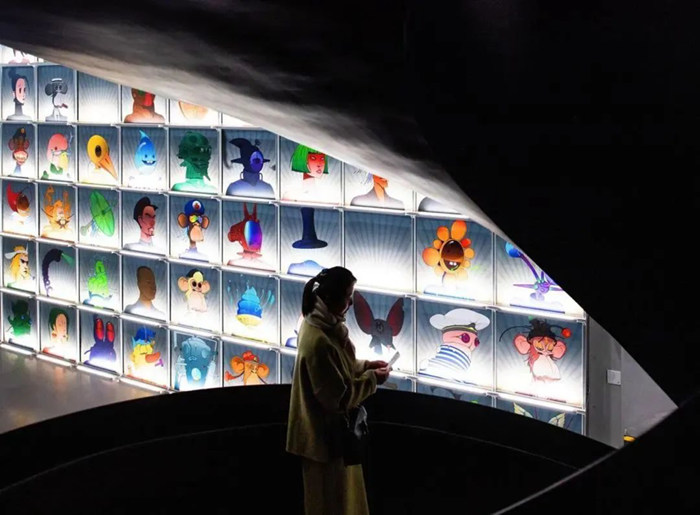 2022武漢雙年展,觀眾在作品《Cyberbobo》前駐足