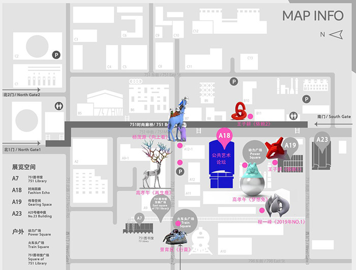 作為751國際設計節六大版塊之一,“駐足?筑景公共藝術展”邀請了5位著名藝術家景育民、楊茂源、王子耕、高孝午、程一峰參展。他們的作品為751園區打造出?道獨特的?景線,引來眾多觀眾前來打卡。