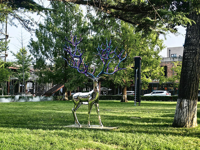 《再生-鹿》,高孝午,200×180×355cm 不銹鋼鍍色,2016年