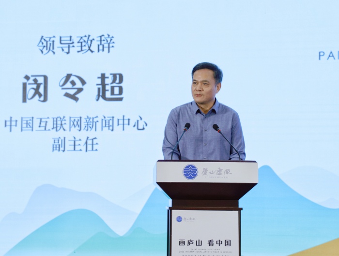 中國互聯網新聞中心副主任閔令超在致辭中講到,習近平總書記在全球文明倡議中提出:“我們要共同倡導加強國際人文交流合作,探討構建全球文明對話合作網絡,豐富交流內容,拓展合作渠道,促進各國人民相知相親,共同推動人類文明發展進步?!薄爱嫃]山,看中國”就是一次立足于中華文明,秉持開放包容的心態,以廬山為背景,賡續中華文脈、激發民族文化創新創造活力、促進多元文明交流互鑒的重要實踐。期待各國藝術家以畫筆詮釋廬山之美,向世界展示中國的秀美山川與悠久文化。