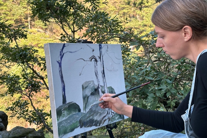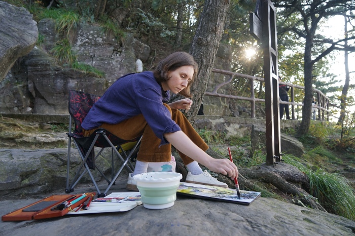 葡萄牙藝術家克里斯蒂娜在廬山現場寫生