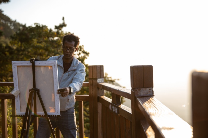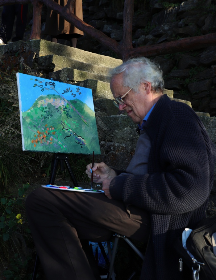 中國藝術家、北京師范大學藝術與設計系主任古棕在廬山寫生