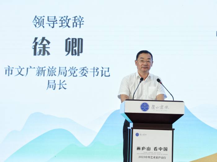 九江市文廣新旅局黨委書記、局長徐卿在介紹活動情況時說到:此次活動是九江市梳理重點文旅項目、聚力區域文旅中心建設,打造九江文旅新亮點的又一重要舉措?;谝晕乃苈?、以旅彰文,推進文化和旅游深度融合發展的方針思路,希望以此次“畫廬山看中國——中外藝術家廬山對話”活動為契機,進一步拓展國際平臺發聲,向世界發出邀約:一同見證和描繪廬山之美,感受九江之美,遇見中國之美,共享世界之美!