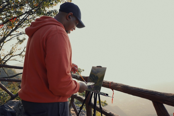 中國油畫學會理事、中央美術學院教授朝戈在廬山寫生創作