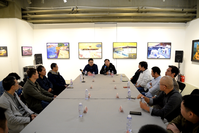 展覽開幕當天,藝術中國受邀與八位參展藝術家和藝術家孫侃、王治平、徐志廣、楊金宇、林建壽進行學術對話,圍繞威海與油畫的不解之緣,寫生對油畫家的意義,重新認識俄羅斯油畫的意義,第二、三代留俄藝術家的特點與變化等話題展開了深入的探討。