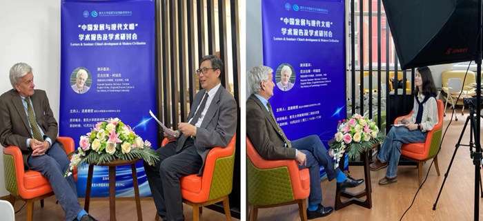 在柯瑞思教授訪問復旦大學國家文化創新研究中心期間,還圍繞著孟建教授所承擔的第二個國家社科基金重大項目“網絡與數字時代增強中華文化全球影響力實現途徑研究”中“中華民族現代文明的建構”“中華文化如何更好地走向世界”“中國重點博物館的國際傳播”等話題對柯瑞思教授進行了專門的電視專訪。
