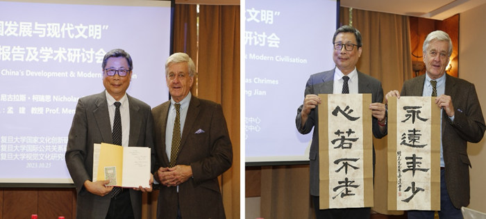 近日,“中國發展與現代文明”學術報告與學術研討活動在復旦大學舉行。英國劍橋大學教授、著名歷史學家、作家尼古拉斯·柯瑞思(Nicholas Chrimes)發表了精彩的學術演講,并同復旦大學師生一道,圍繞“中國發展與現代文明”的主題,就“文明與文化概念辨析”“媒介發展與文明構建”“傳統文化保護與跨文化傳播”等具體議題展開了深入的學術研討。本次活動由復旦大學國家文化創新研究中心聯合復旦大學國際公共關系研究中心、復旦大學視覺文化研究中心共同主辦。復旦大學國家文化創新研究中心主任孟建教授主持這次國際學術交流活動。
