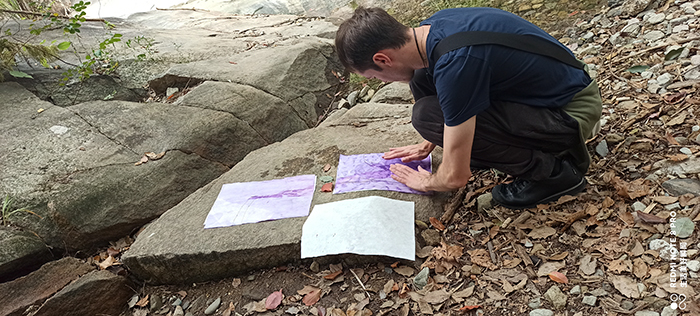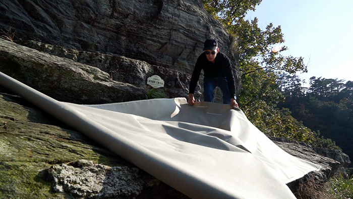 藝術家伊瑞在錦繡谷巨石上創作(攝影:胡月)
