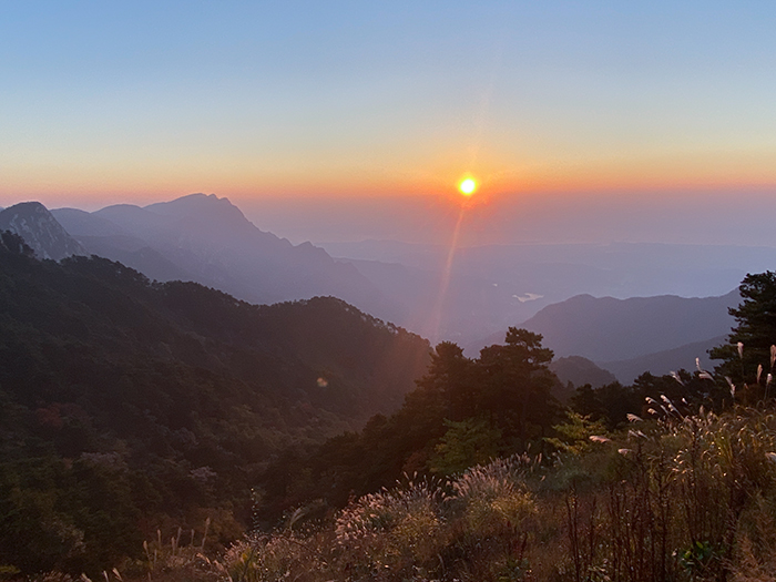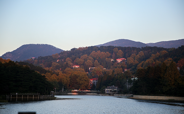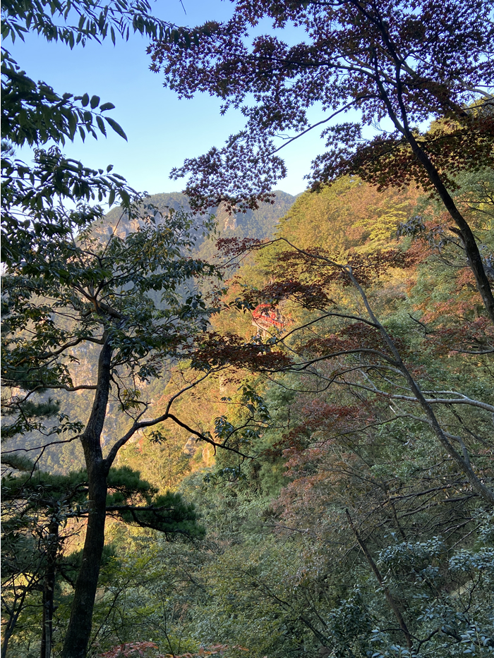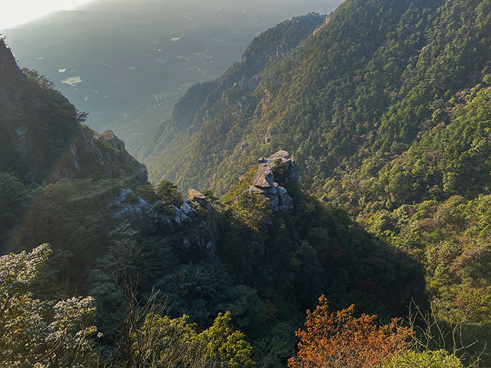 廬山其實是一座“孤山”,位于鄱陽湖平原,突兀于長江南岸,顯得格外雄偉峻拔。廬山又形成獨立的眾多山峰,這才有了“橫看成嶺側成峰,遠近高低各不同”的不同山貌。廬山受特殊地形和氣候影響,山間溪流縱橫,山上云霧繚繞,相比中國北方山體更顯秀美之姿。我們到訪的季節正值廬山秋日艷陽高照,蔥郁的山體在陽光下閃耀著豐富斑駁的色彩。