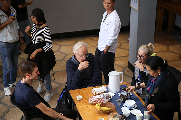 藝術家在江西省、中科院廬山植物園科普館休息廳內喝茶(攝影:胡月)