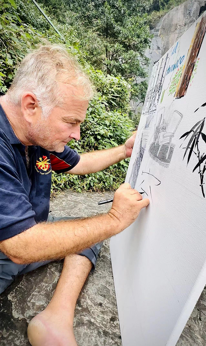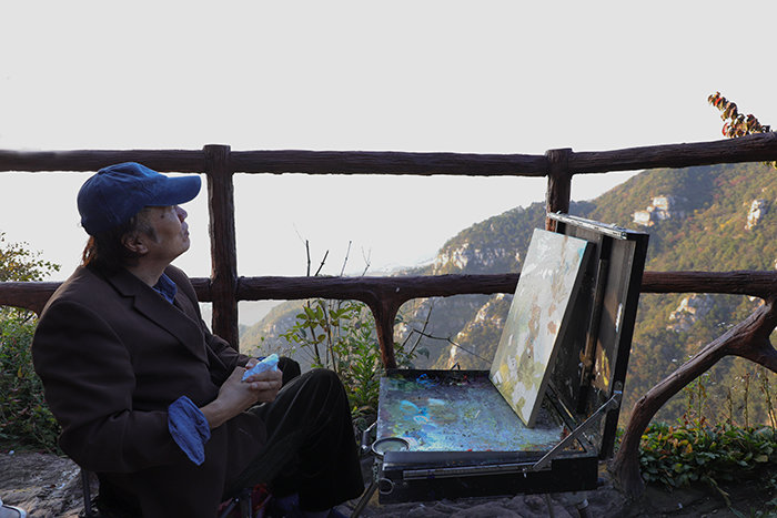 藝術家在秀峰創作(攝影:劉鵬飛)