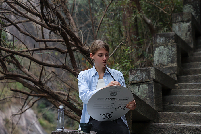 藝術家克里斯蒂娜在牯嶺鎮寫生(攝影:胡月)
