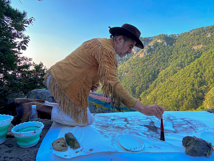 藝術家朝戈在錦繡谷創作(攝影:胡月)