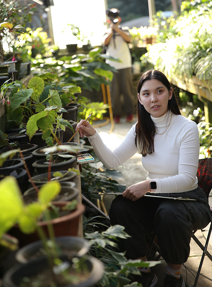 克里斯蒂娜是一位來自葡萄牙的首飾設計師,她在植物園溫室細致地勾畫著各種熱帶植物,她說:“這里的山、瀑布和峭壁給予了我很多靈感,但植物園的花草更適合我的珠寶首飾設計?!?/p>